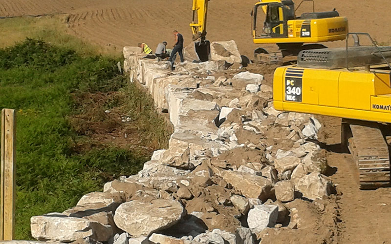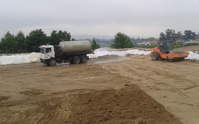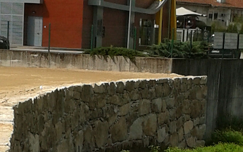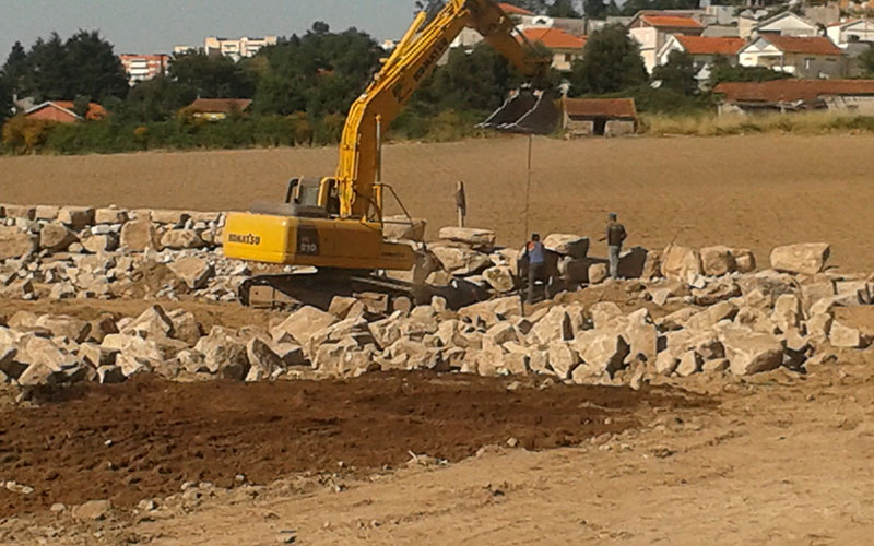 Natureza dos trabalhos: Construção de muros de suporte em pedra seca, execução de aterro controlado e pavimentação.